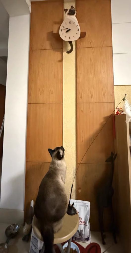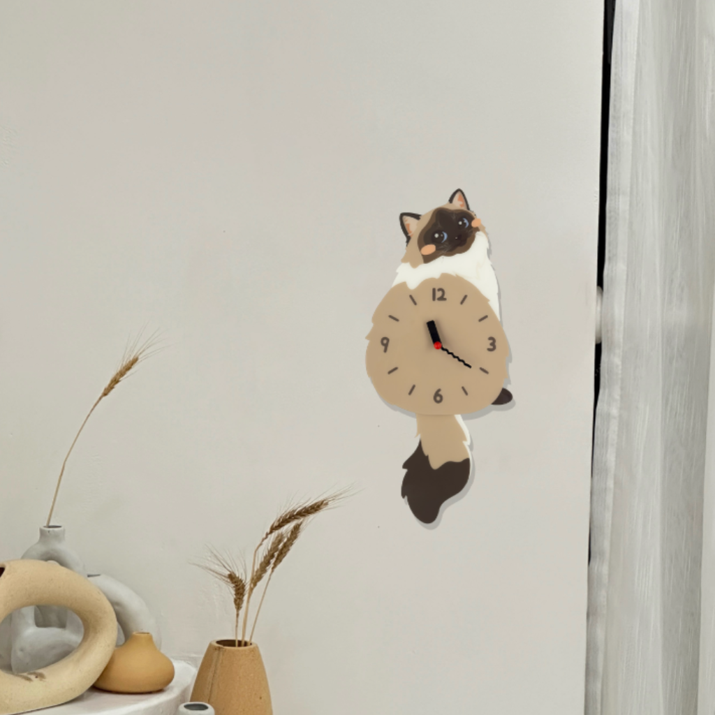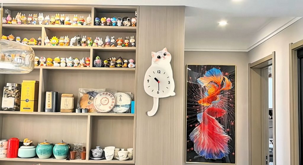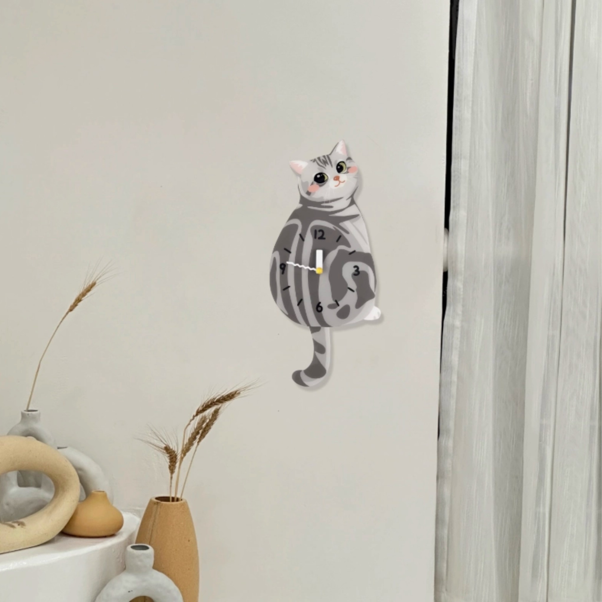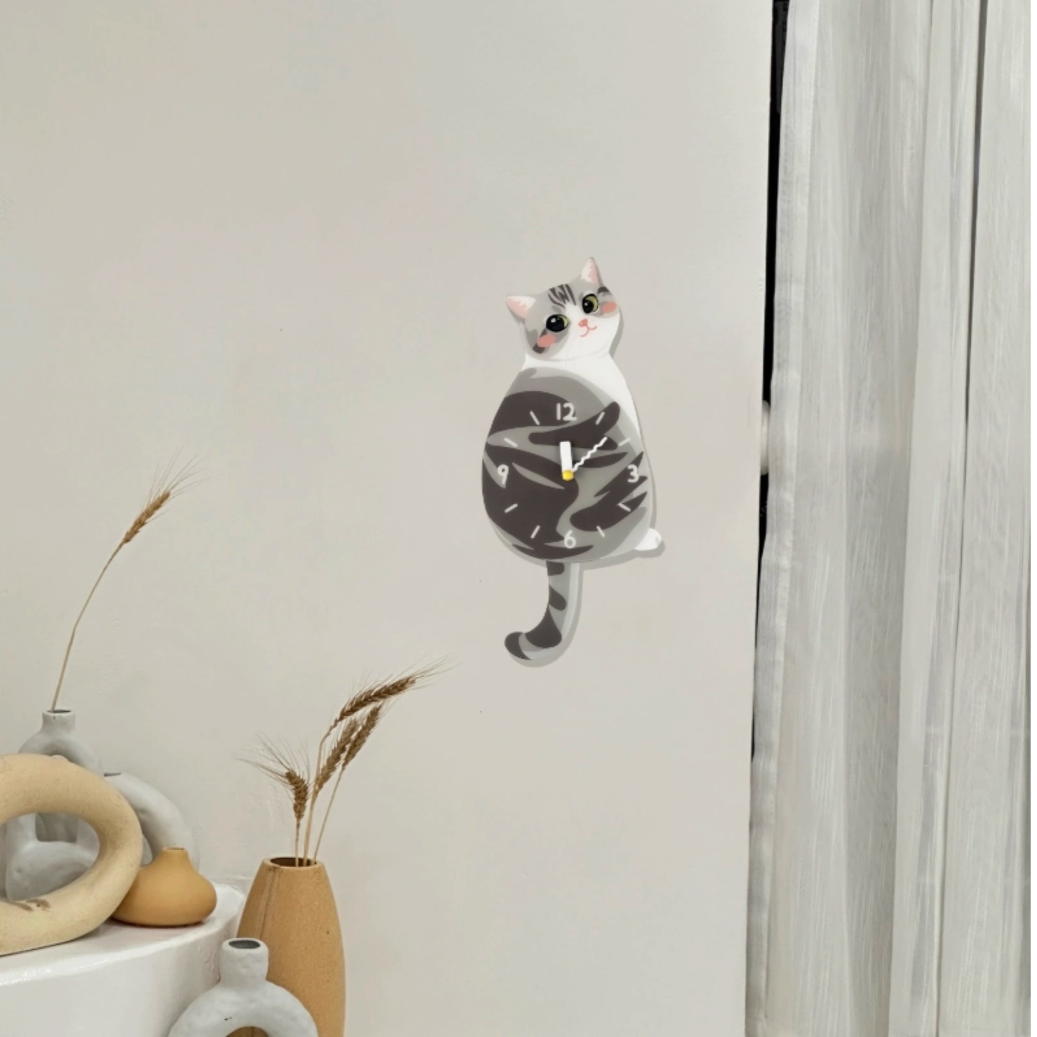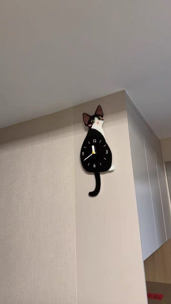 Haha, tail swings way more than I expected. Super cute but sometimes distracts me. Happy with this cat acrylic clock. It’s quiet, accurate, and the design adds charm to my bedroom. Definitely a conversation starter!