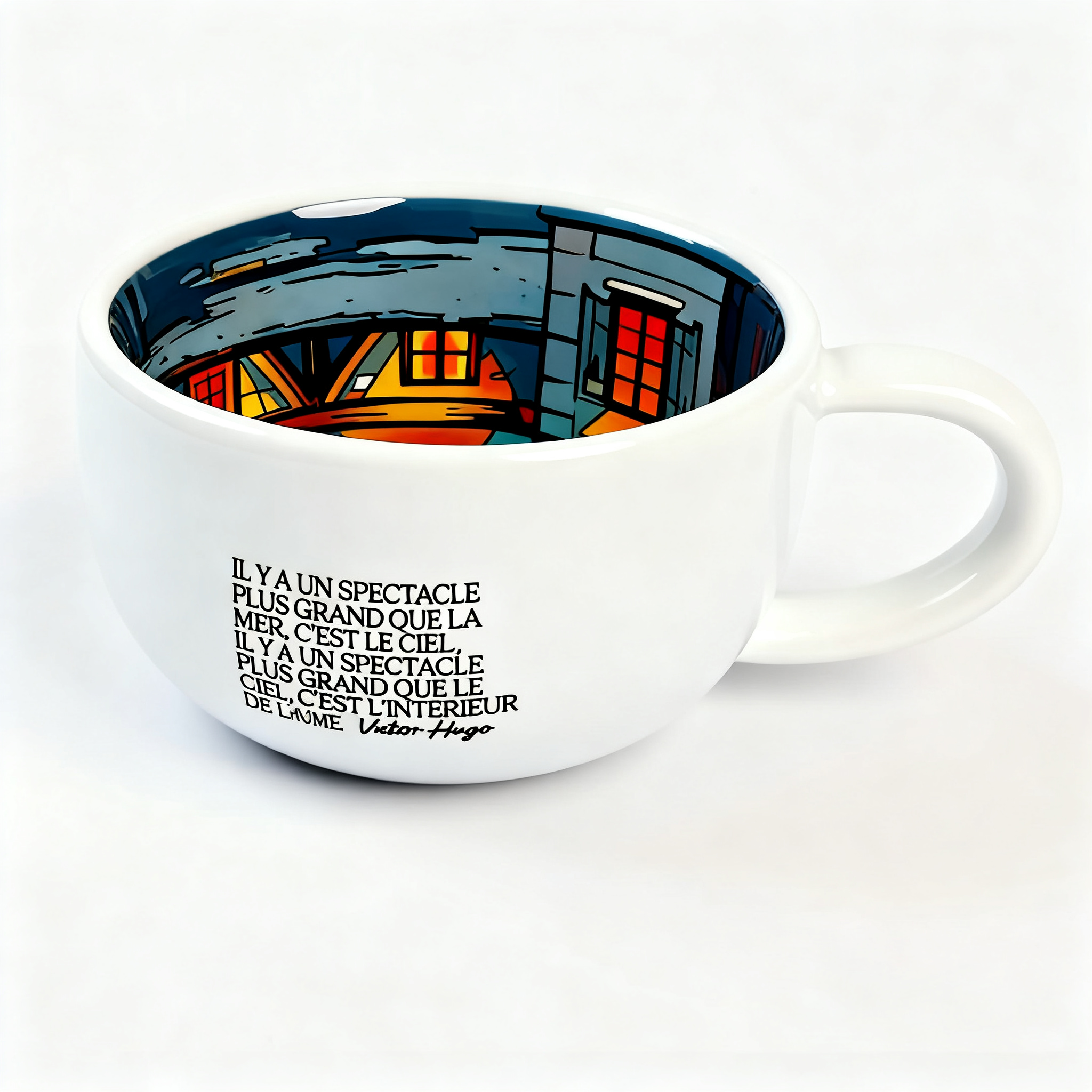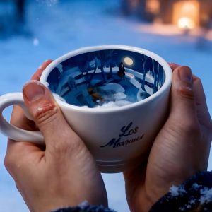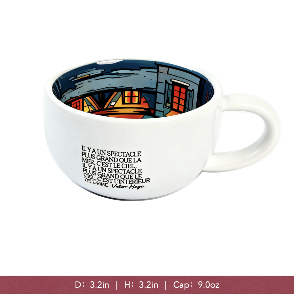 The cup’s inner surface fully depicts streets, lights, and people, with every detail telling its own little story.