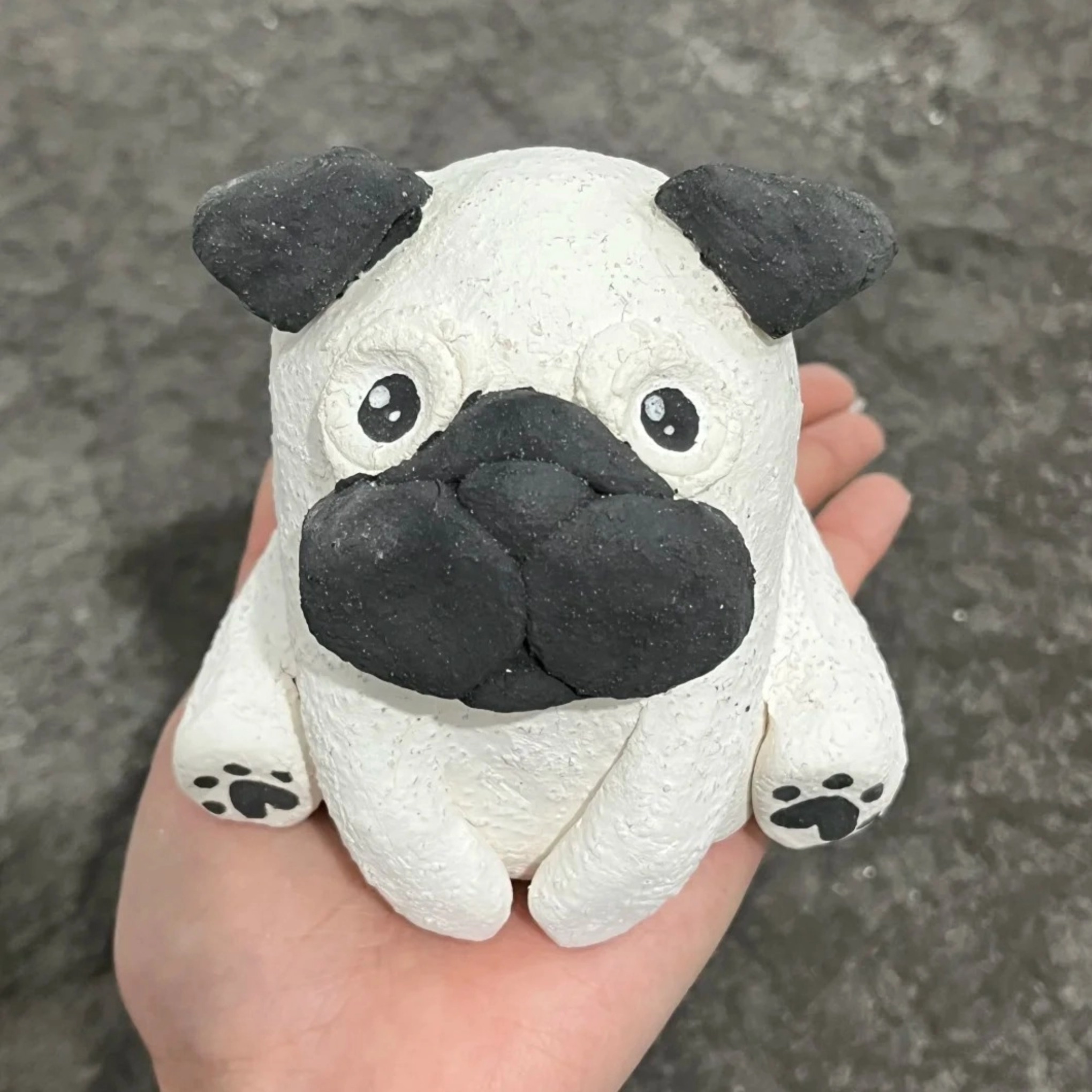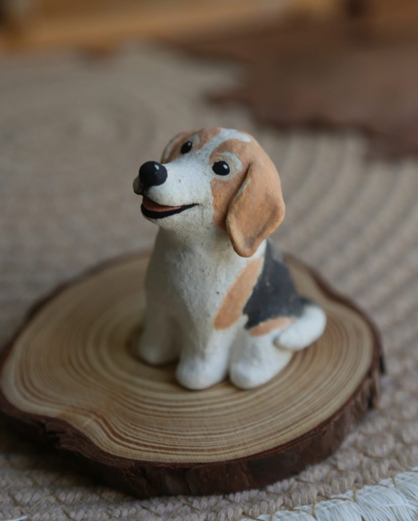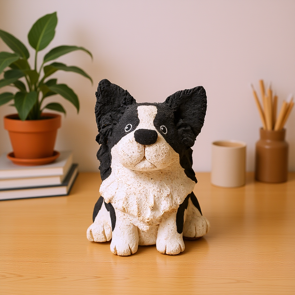 I bought this for my desk, and it’s surprisingly cheerful. The little dog looks almost alive, and I catch myself staring at it while working. The clay feels sturdy, and it hasn’t chipped yet.