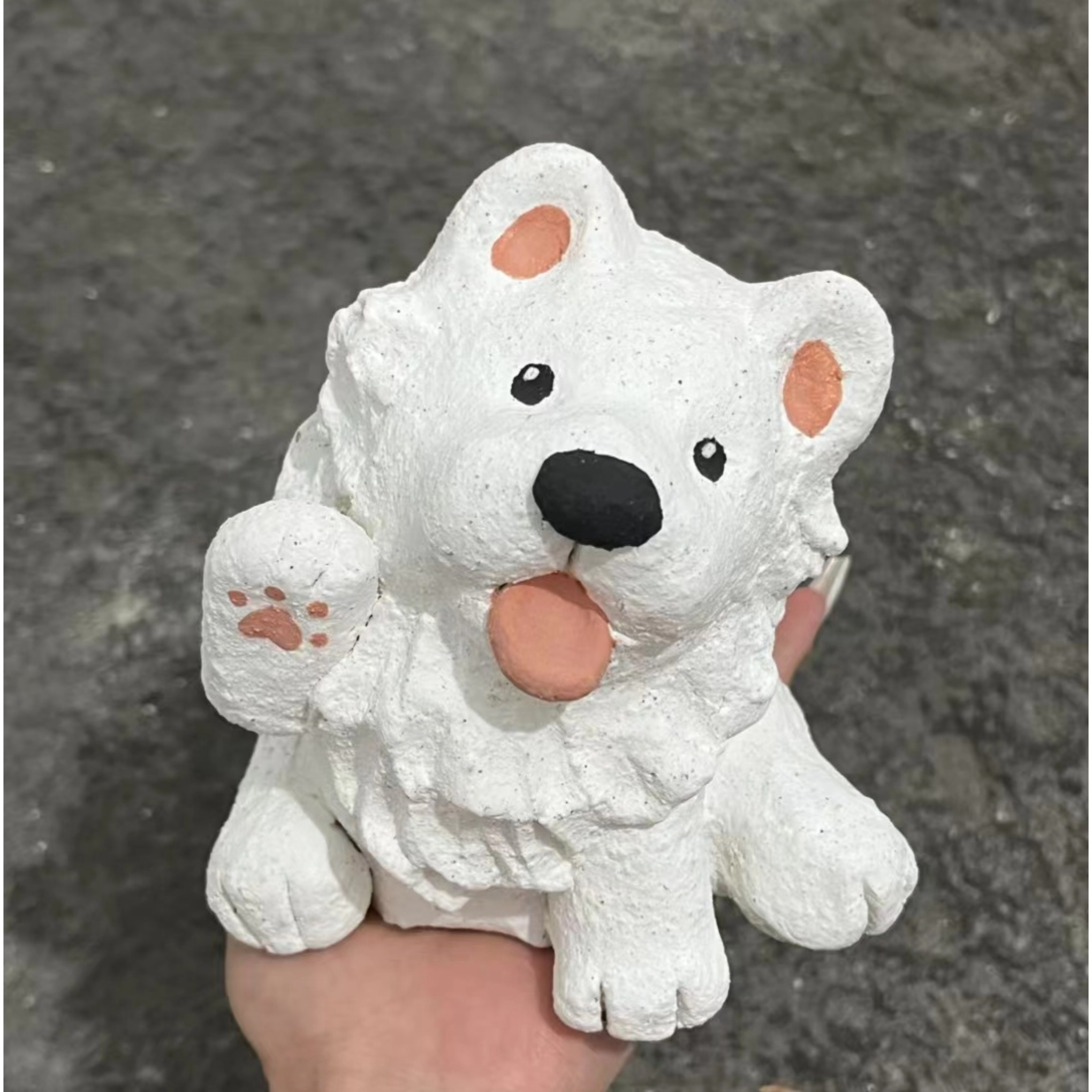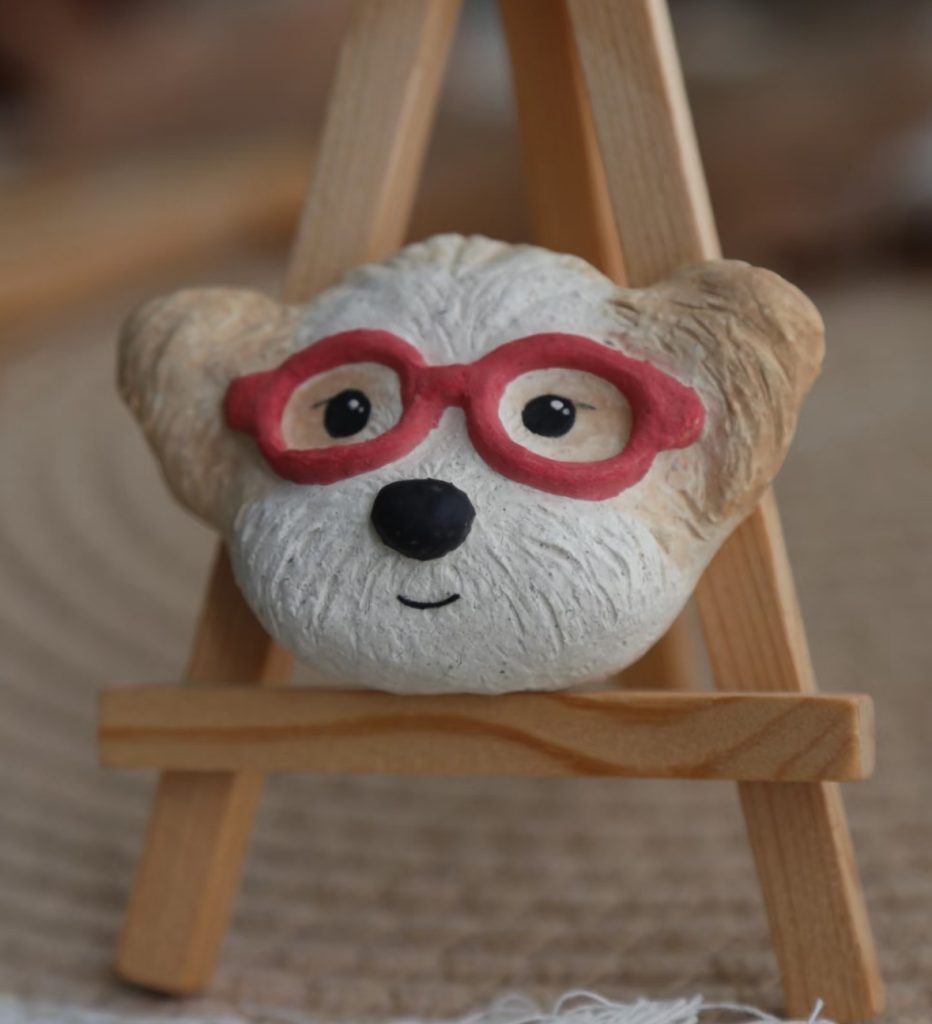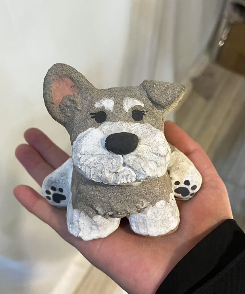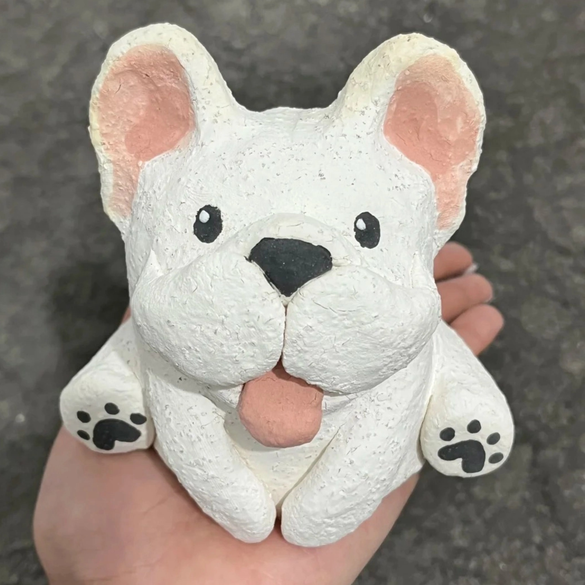 I bought this for my desk, and it’s surprisingly cheerful. The little dog looks almost alive, and I catch myself staring at it while working. The clay feels sturdy, and it hasn’t chipped yet.