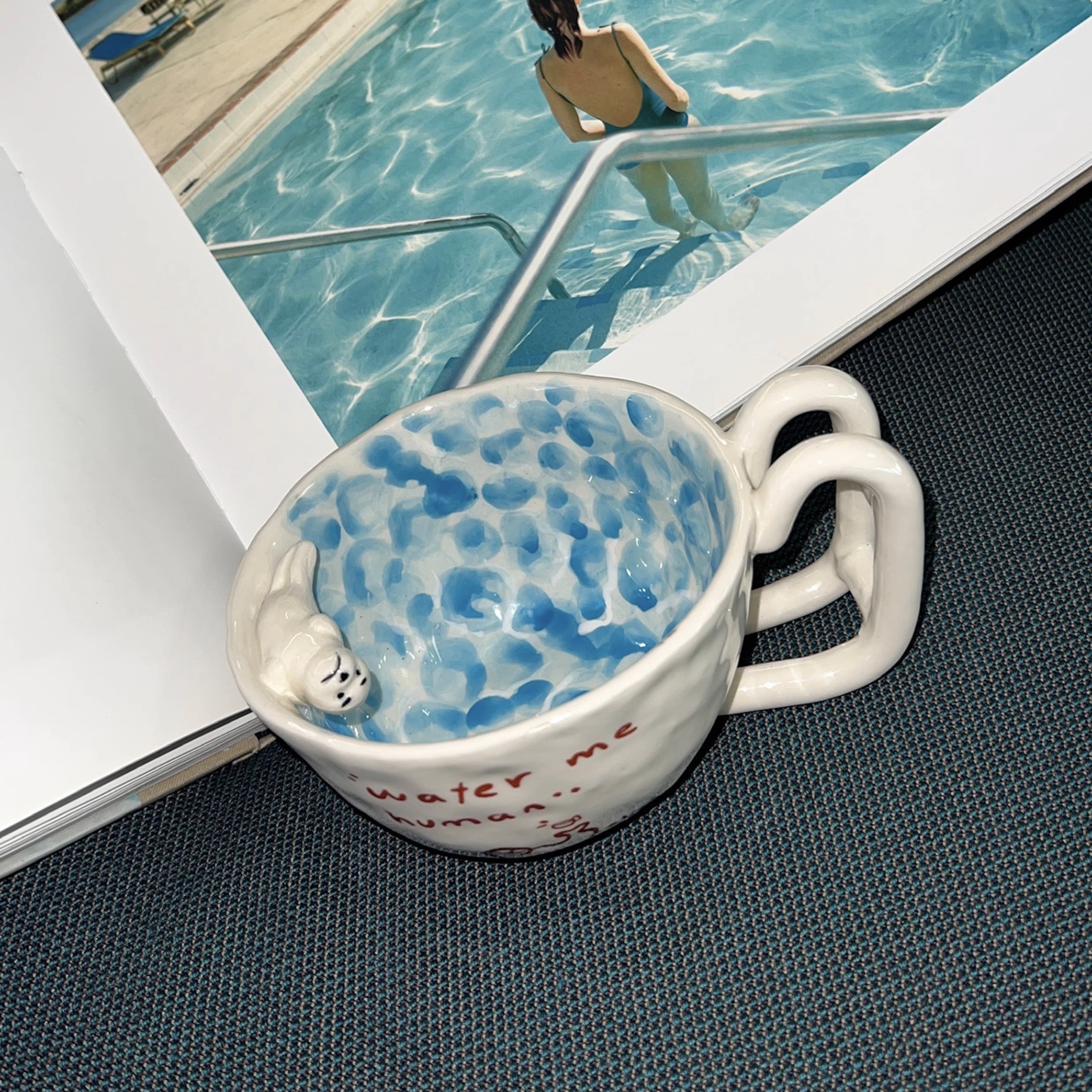 The intricate underwater artwork and the playful seal peeking over the rim spark joy and calm with every sip.