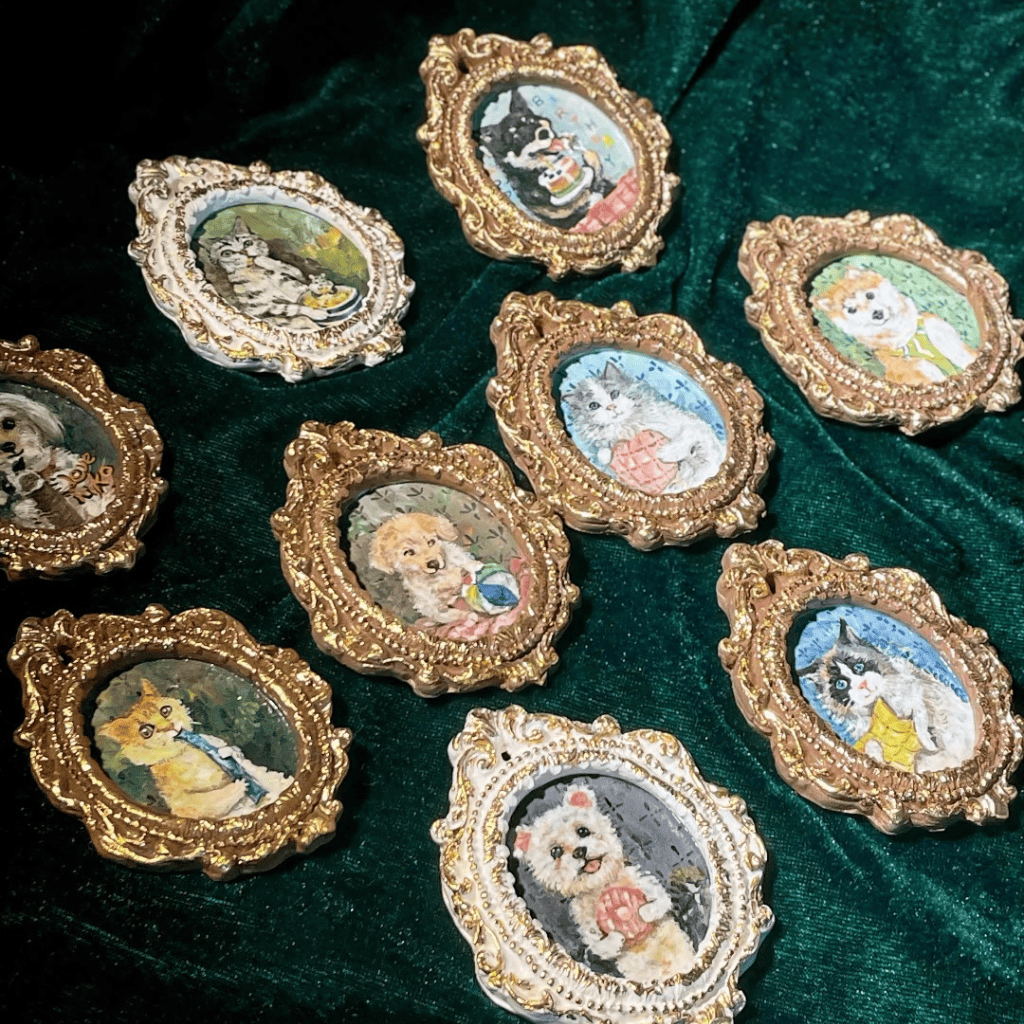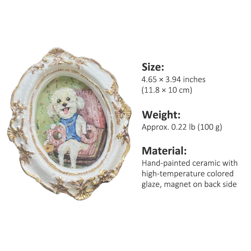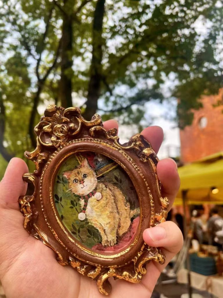 The tiny brush strokes on the fur surprised me, it’s way more detailed than I imagined. I love this little artwork. The ceramic surface is smooth, and the vintage frame adds character. It brightens up any corner where I place it.